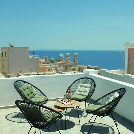 Die 74 m² großen Euphoria Suite - Endless View Ermoupoli in Ermoupoli befindet sich rund 3 Kilometer vom Strand Kini und etwa 13 Fußminuten vom National Resistance Monument entfernt. Das Apartment bietet einer Terrasse mit einem Ausblick auf die Berge und liegt in einer Entfernung von nur 5 Gehminuten vom Miaouli-Platz.